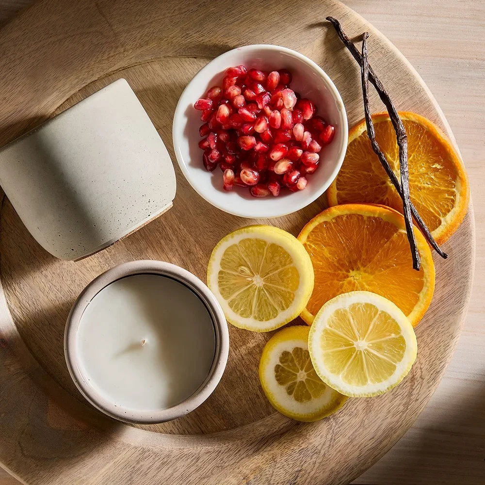 Embrace the allure of pomegranate, a captivating blend of sweetness, tartness, and subtle florals, complemented by undertones of musk and woods. A luxurious and inviting aroma that fills the space with warmth and sophistication.